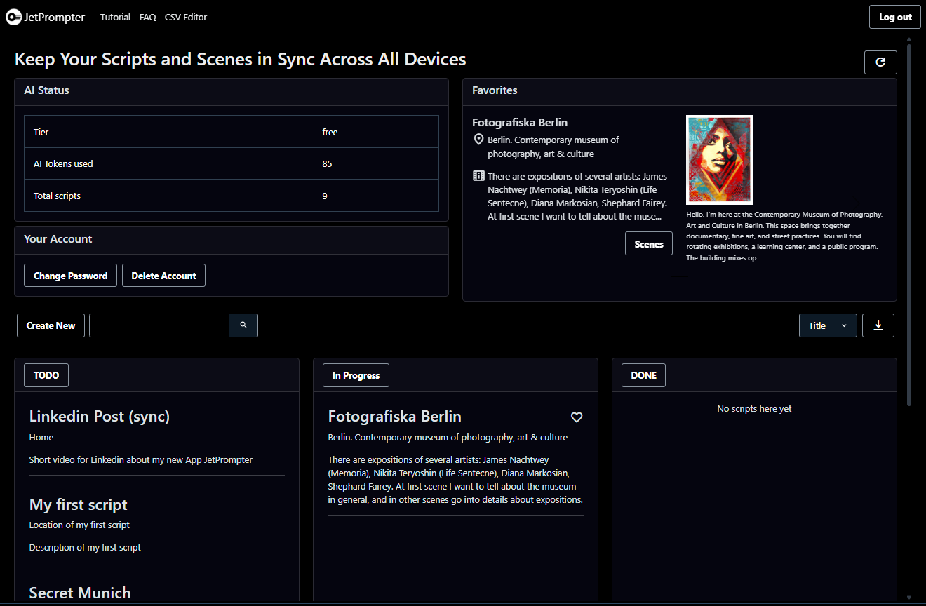 Once signed in, you will see the main dashboard (see picture below). This is your central hub for managing all your scripts.